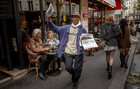 ایک پولیس اہلکار قریب کھڑے افراد کو دور رہنے کے لیے چیخ کر بتاتے ہیں کہ ’اس کے پاس بم ہے، دور ہو جائیں۔‘