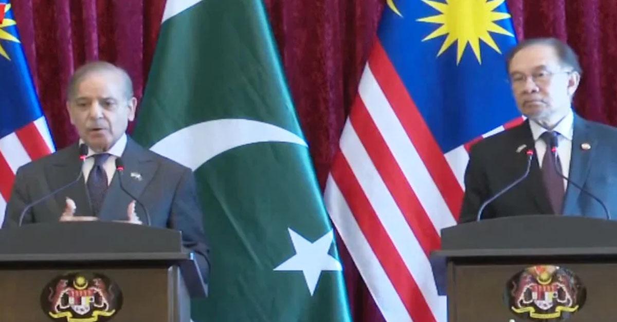 وزیرِاعظم شہباز شریف کا کہنا ہےکہ پاکستان، ملائیشیا کے ساتھ ترقیاتی منصوبوں میں باہمی تعاون کو فروغ دینا چاہتا ہے۔پاکستان اور ملائیشیا کے وزرائے اعظم نے مشترکہ نیوز کانفرنس کی جس میں دوطرفہ تعلقات، علاقائی امور اور غزہ کی صورتحال پر تفصیلی بات چیت ہوئی۔