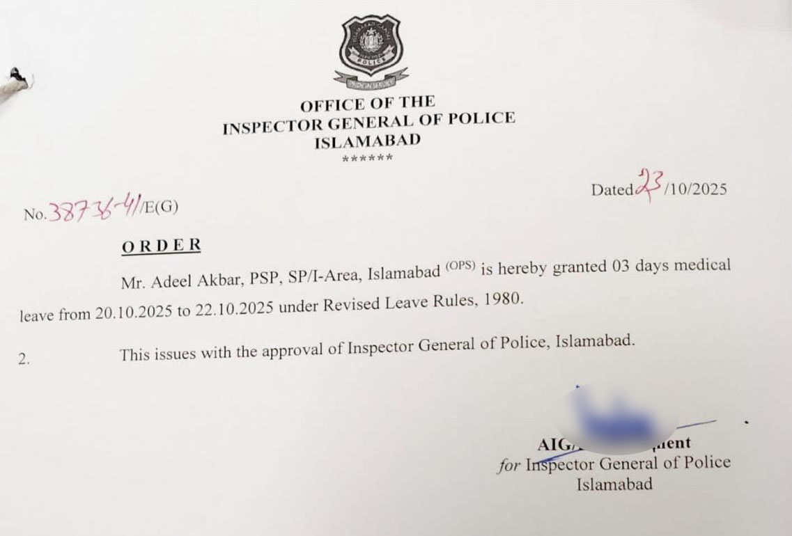 اسلام آباد: مبینہ طور پر گولی مار کر خودکشی کرنے والے ایس پی عدیل اکبر کے کیس میں ایک اہم پیش رفت سامنے آئی ہے۔