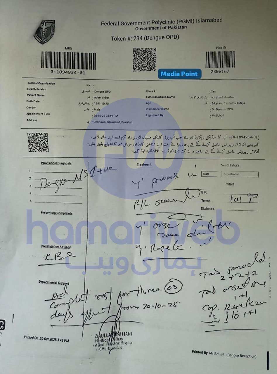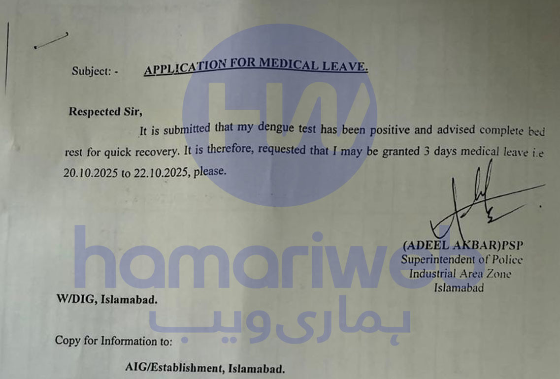 ذرائع کے مطابق، عدیل اکبر گزشتہ کچھ دنوں سے ڈینگی بخار میں مبتلا تھے۔ ڈاکٹروں نے انہیں دو دن کی رخصت تجویز کی تھی، مگر انہیں چھٹی نہیں دی گئی۔ حیران کن طور پر، ان کی موت کے بعد تین دن کی سرکاری رخصت کا لیٹر جاری کیا گیا جو میڈیا کے پاس موجود ہے۔