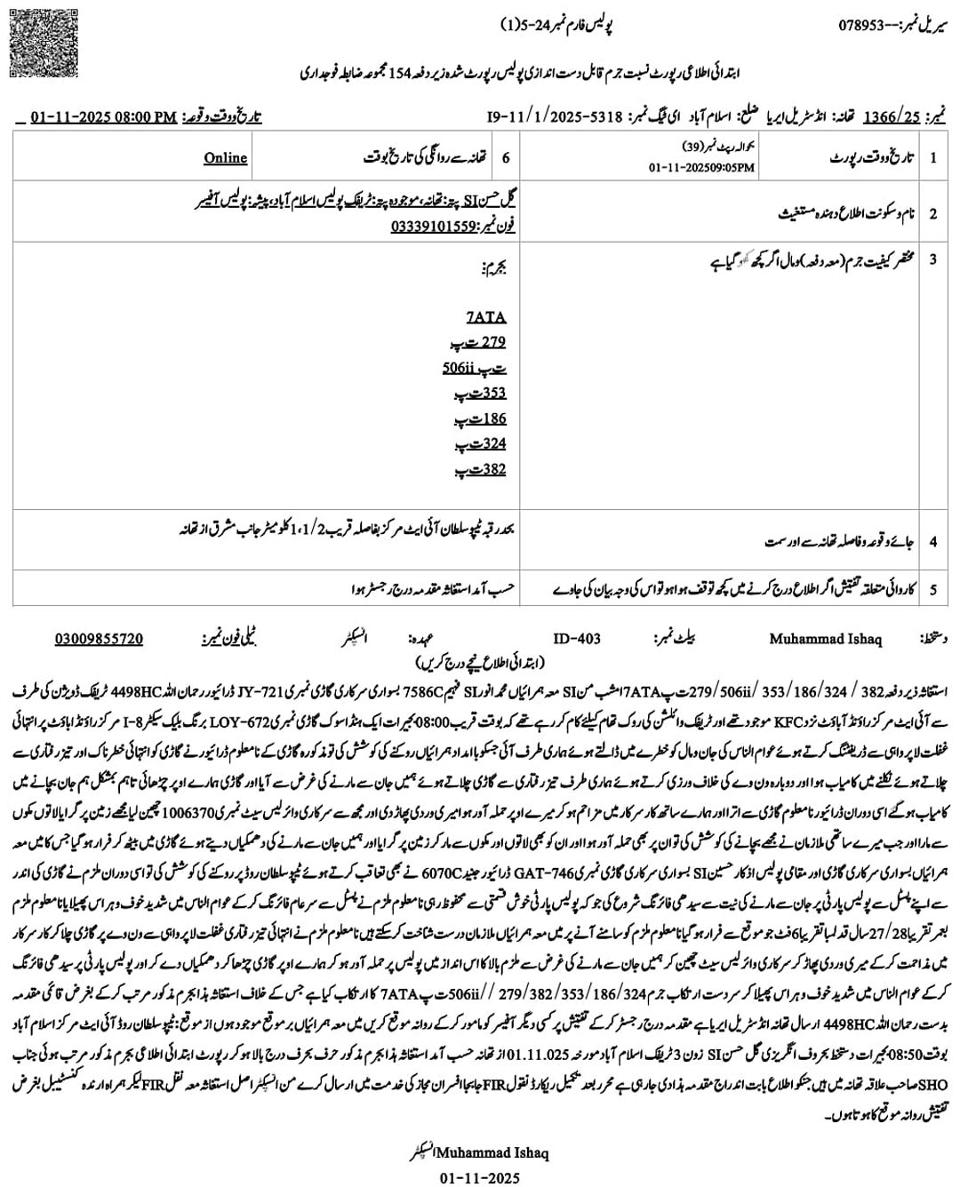 ذرائع کے مطابق عاقب نعیم اس سے قبل پی ڈبلیو ڈی ہاؤسنگ سوسائٹی میں ایک صحافی پر بھی تشدد کر چکا ہے، جس کے خلاف تھانہ لوہی بھیر میں مقدمہ درج کرانے کے لیے صحافی کی جانب سے درخواست دی جا چکی ہے۔ پولیس نے ملزم کے خلاف مزید قانونی کارروائی شروع کر دی ہے۔