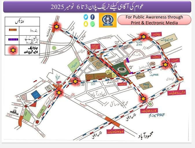 ٹریفک پولیس نے شہریوں سے اپیل کی ہے کہ زحمت سے بچنے کے لیے جاری کردہ ہدایات پر عمل کریں، گاڑیاں سروس یا مین روڈ پر پارک نہ کریں اور کسی بھی رہنمائی کے لیے 1915 ہیلپ لائن سے رابطہ کریں۔