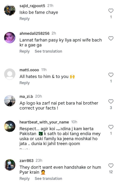 فرحان سعید کے بیان نے سوشل میڈیا صارفین کو مزید غصے میں مبتلا کر دیا۔ لوگوں نے سخت تنقیدی تبصرے کیے ، ایک صارف نے کہا کہ دل بڑے نہیں، خواہشیں بڑی ہیں۔ کسی نے کہا کہ یہ تم لوگوں کا مذہب ہے، بھارتیوں کی تعریف کرو اور خوشامد کرو۔