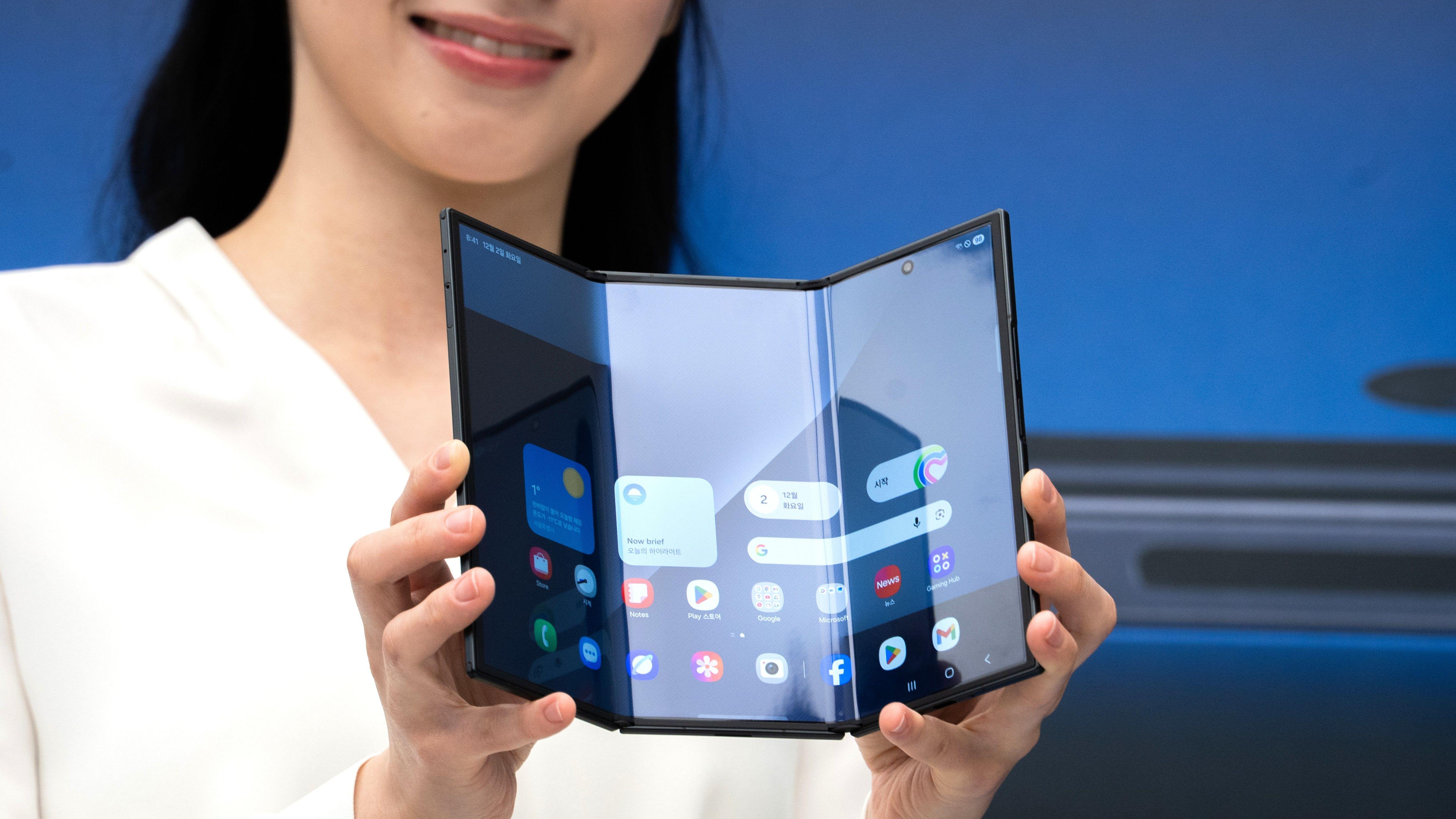 فون میں تین پینل نصب کیے گئے ہیں اور یہ سام سنگ کے اپنے سابقہ ماڈل گلیکسی زی فولڈ سیون سے قریب 25 گنا زیادہ بڑا ہےسام سنگ نے منگل کو اپنے پہلے ملٹی فولڈنگ سمارٹ فون کی رونمائی کی ہے۔ یہ سمارٹ فونز کی ایسی نئی قسم ہے جس میں حالیہ عرصے کے دوران مقابلہ سخت ہوتا جا رہا ہے اور سام سنگ بظاہر چاہتا ہے کہ یہ اپنی پوزیشن مضبوط کر سکے۔
