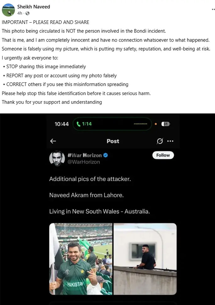بھارت اور افغانستان کی جانب سے سڈنی میں پیش آنے والے فائرنگ کے واقعے کو پاکستان سے جوڑنے کی منظم پروپیگنڈا مہم سامنے آ گئی ہے۔ بھارتی اور افغان سوشل میڈیا اکاؤنٹس نے سڈنی میں مقیم پاکستانی نوجوان نوید اکرم کو حملہ آور قرار دے کر جھوٹی معلومات پھیلائیں تاہم نوید اکرم نے ویڈیو اور تحریری پیغامات کے ذریعے اس پروپیگنڈے کو بے نقاب کر دیا ہے۔