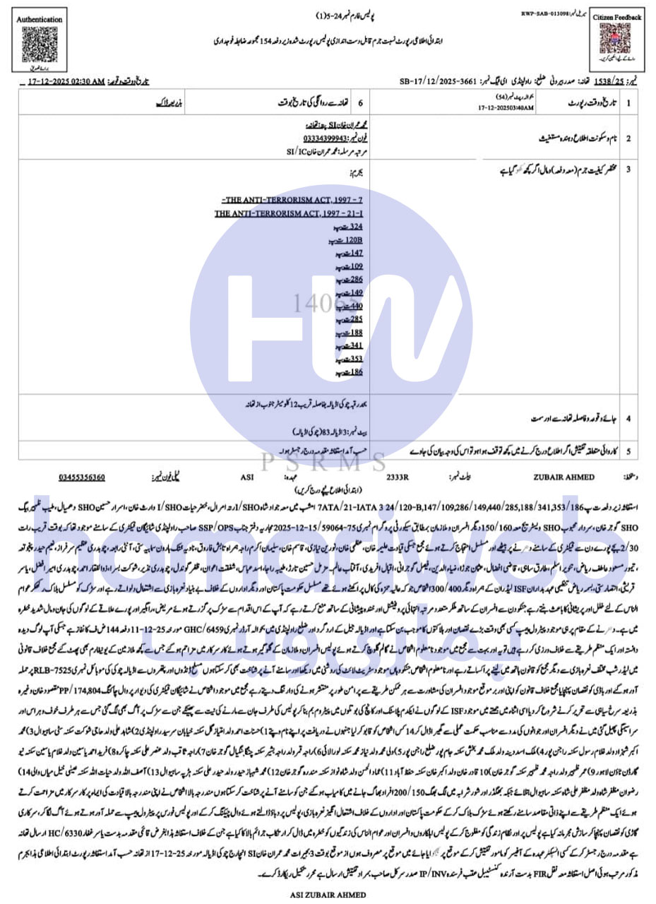 مقدمے میں علیمہ خان، ڈاکٹر عظمیٰ، نورین نیازی، قاسم خان، سلمان اکرم راجہ اور عالیہ حمزہ کو نامزد کیا گیا ہے۔ مقدمہ مجموعی طور پر 35 نامزد اور 400 نامعلوم ملزمان کے خلاف درج کیا گیا ہے۔