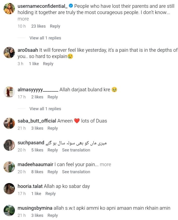 رابعہ بٹ کے مداحوں اور سوشل میڈیا صارفین نے ان کے جذبات کو سراہا اور ان کے لیے دعا کی ساتھ ہی مرحومہ والدہ کی مغفرت کے لیے بھی دعائیں کیں۔