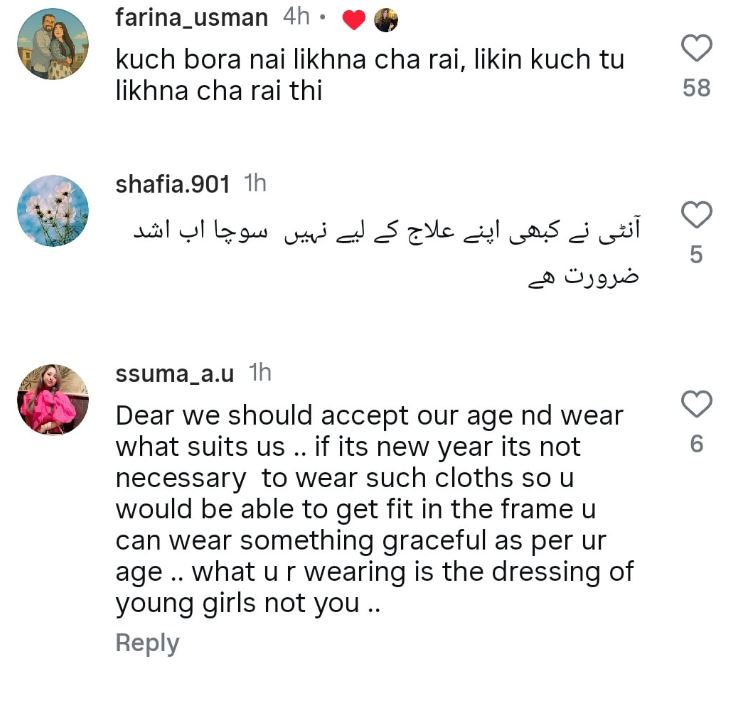 سوشل میڈیا پر جہاں کچھ صارفین نے ان کے انداز کو منفرد قرار دیا وہیں متعدد افراد نے مزاحیہ اور تنقیدی تبصرے بھی کیے۔ بعض صارفین نے لباس کو عمر کے مطابق نہ ہونے کا تبصرہ کیا جبکہ کچھ نے فیشن کے انتخاب پر طنزیہ جملے لکھے۔