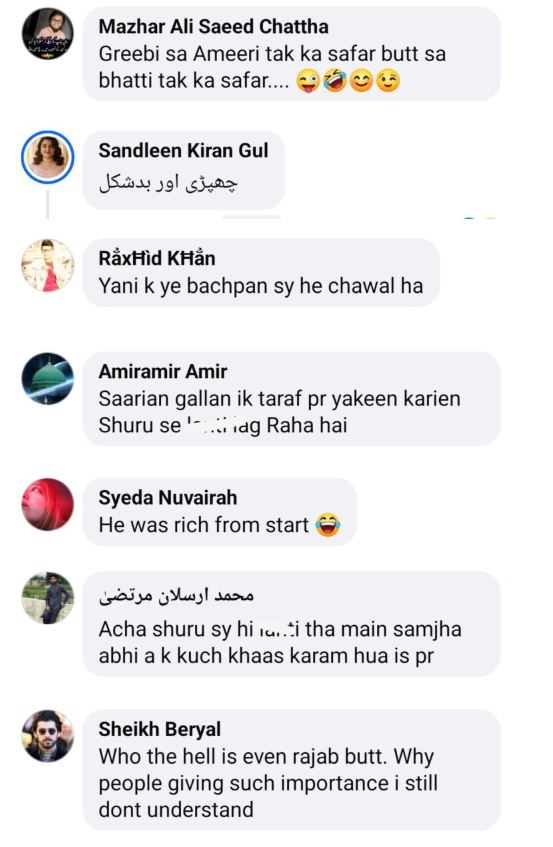 سوشل میڈیا صارفین نے رجب بٹ کے پرانے انداز پر طنز و مزاح بھی کیا۔ ایک صارف نے لکھا وہ شروع سے ہی چھپری تھا۔ ایک اور نے مزاحیہ انداز میں کہا ہمیشہ سے امیر رہا ہے۔