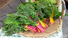 Chard Also known as:Swiss Chard, Silverbeet, Perpetual Spinach, Mangold.Chard (Beta vulgaris var. cicla is a leafy vegetable. Chard has shiny green ribbed leaves, with stems that range from white to yellow and red depending on the cultivar. Swiss chard, along with kale, mustard greens and collard greens, is one of several leafy green vegetables often referred to as "greens". Chard belongs to the same family as beets and spinach and shares a similar taste profile: it has the bitterness of beet greens and the slightly salty flavor of spinach leaves. Both the leaves and stalk of chard are edible, although the stems vary in texture with the white ones being the most tender .Fresh young chard can be used raw in salads. Mature chard leaves and stalks are typically cooked or sauteed; the bitter flavor fades with cooking. Although Swiss chard is available throughout the year, its season runs from June through August when it is at its best and in the greatest abundance