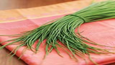 The Chive is the smallest, though one of the finest-flavoured of the Onion tribe, belonging to the botanical group of plants that goes under the name of Allium, which includes also the Garlic, Leek and Shallot. Chives are long, thin leaves that grow from 6-20 inches long (15-50 cm.). Some species' leaves are flat, while others are tubular. They resemble green onions or scallions, but are thinner. The bulbs grow very close together in dense tufts or clusters, and are of an elongated form, with white, rather firm sheaths, the outer sheath sometimes grey. There are several related species, including Siberian chives and garlic chives. The Chive contains a pungent volatile oil, rich in sulphur, which resent in all the Onion tribe and causes their distinctive smell and taste