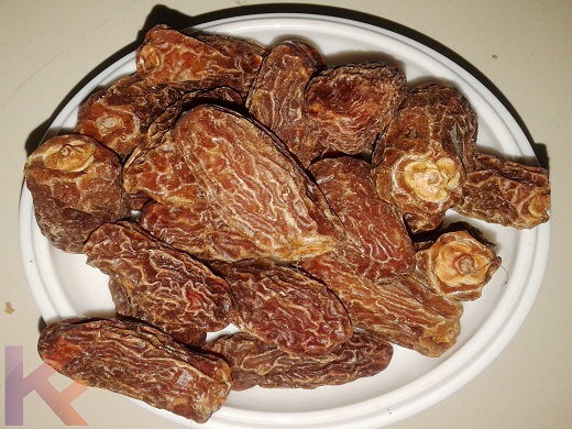 Dates are oval-cylindrical, 2.5-5 cm long, and 1.5-2.5 cm diameter. When dates are unripe, they come bright red to bright yellow in color, depending on the type of dates. Dates contain a single seed about 2-2.5 cm long and 5-7 mm thick Soaked dried dates Soaking will give best results as the dates are dried. Keep the dried dates in warm water for 15 mins. Drain them as they become soft. Dry the same in shelter. Further, enjoy on its own or can be used to make sauces, dessert, puree etc.