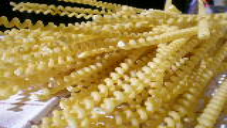A variety of pasta which is about one inch long and has the shape of four ascending, entwined, parallel spirals. Because of this, fussilli "bind" with the sauce very closely and are therefore indicated for pasta recipes where the sauce is somewhat fluid.