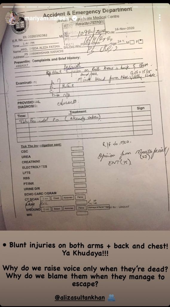 انکے گھریلو تشدد پر مبنی تصاویر اداکارہ مریم نفیس نے شیئر کرتے ہوئے سیدہ علیزے سلطان پر یقین نہ کرنے پر معذرت کی ہے۔ آئیے ان تصاویر پر ایک نظر ڈالتے ہیں۔